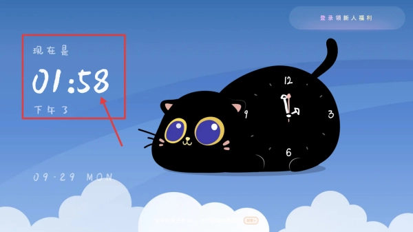 3、点击黑猫时钟风格表盘,完成时钟界面的更换。