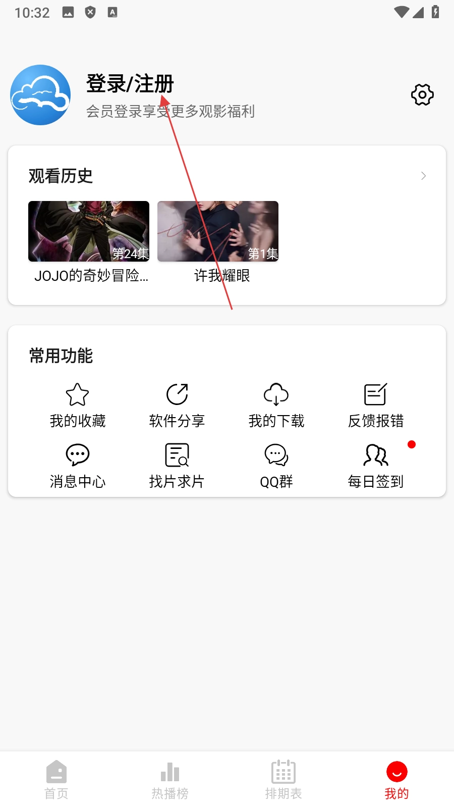 2、在个人中心页面,点击【登录/注册】,进入设置页面。