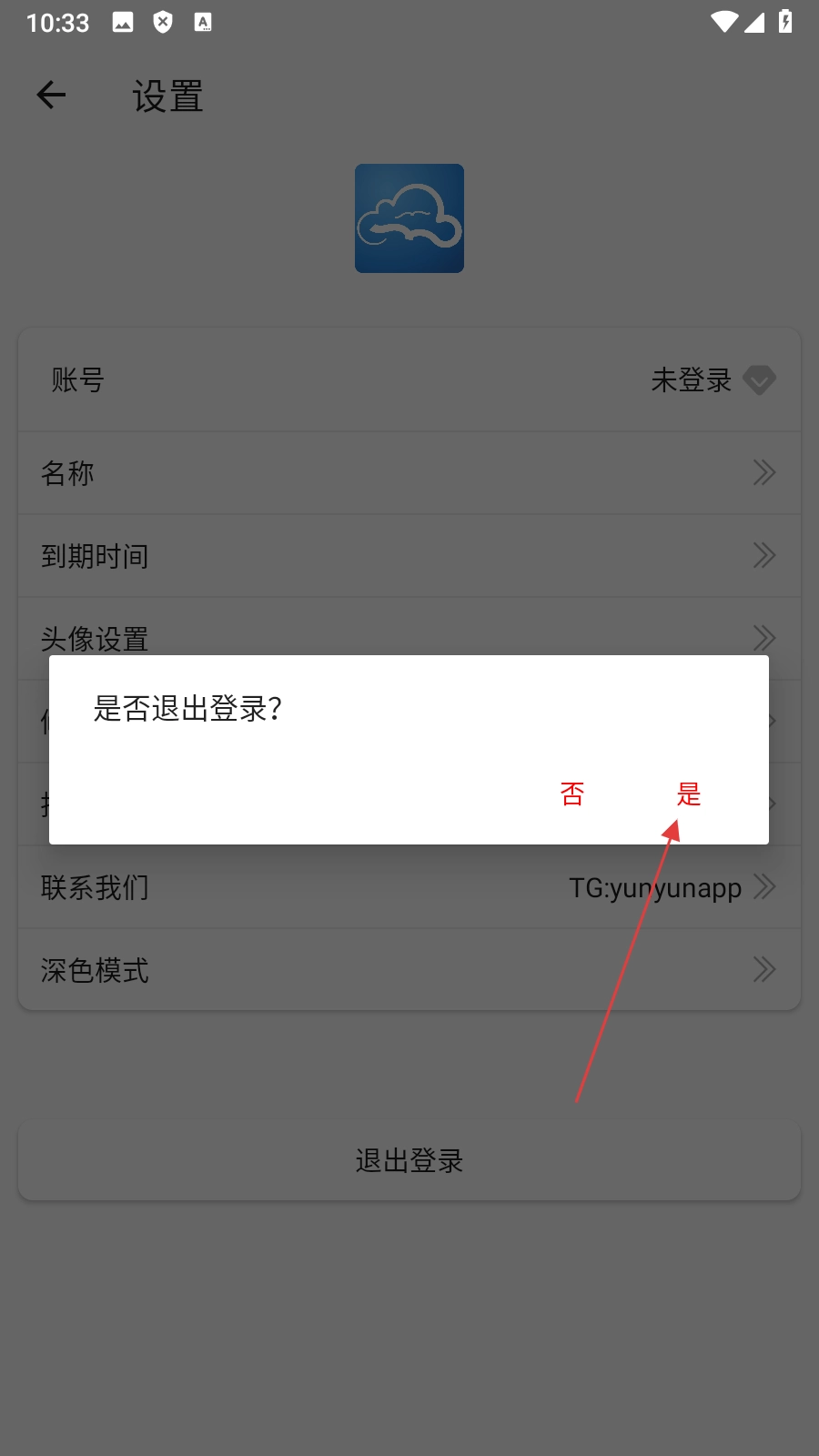 4、在退出登录确认框中,点击【是】,即可完成账号退出登录操作。