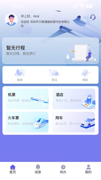 万顺通商旅,是深圳市万顺通国际旅行社有限公司专为频繁出差人士精心打造的综合型商旅服务软件。该软件整合了国内外机票售卖、出国签证办理、酒店预订等诸多功能,助力用户畅享一步到位的出差旅程。不仅如此,软件还涵盖企业旅行相关服务,可为企业规划前往目的地的最优行程,推荐当地美食与景点。有了这款软件,出行将变得轻松便捷,若您有需求,赶快行动吧!