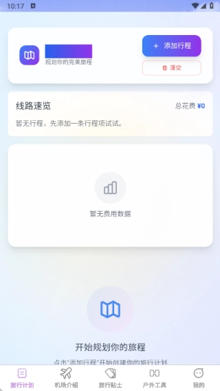 1. 在旅游计划页面,你能够添加行程,还能查看线路速览。