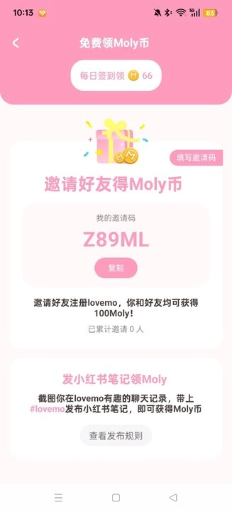lovemo聊天需要用的Mloy币,可以通过邀请好友注册的方式获取。
