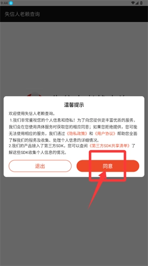 1. 第一步,在提示框里点击同意,以确认隐私政策及用户协议的内容。