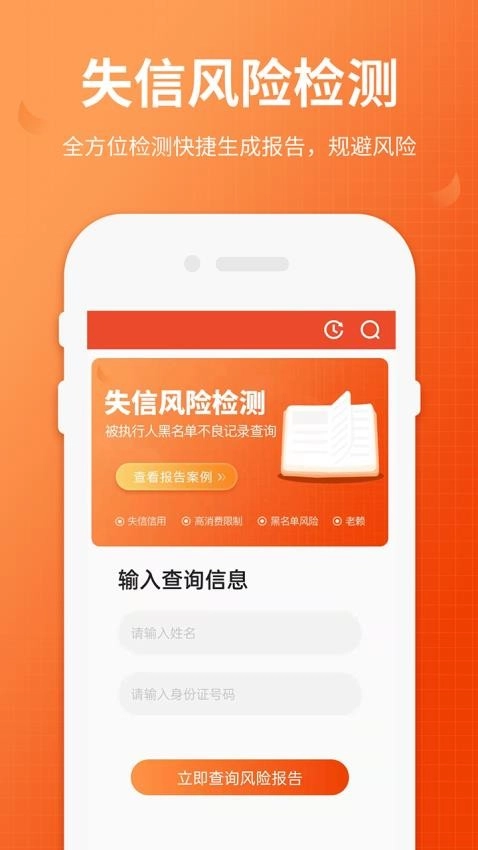 4、深度查询:一键通过姓名、身份证,快速获取黑名单、法院执行人、失信人以及老赖相关信息。