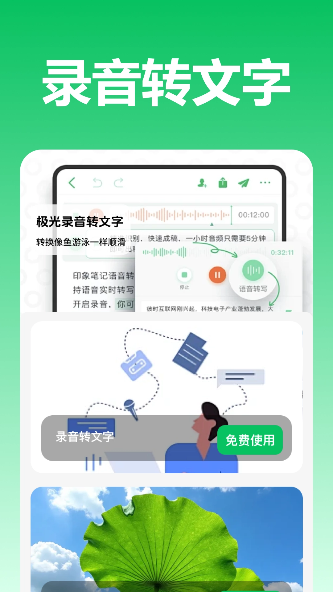 极光录音转文字App堪称一款极为实用的文字转换利器。这款App具备语音识别、音频转写、文字翻译以及图片编辑等诸多功能,能助力大家便捷地获取各类信息,让信息整理变得轻松又高效。它适用于形形色色的场景,为人们的生活增添了诸多便利。还等什么,赶快行动起来吧!