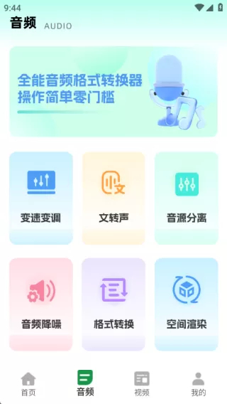 3、音频编辑功能强大,支持变速变调、文转声、音源分离、降噪、格式转换及空间渲染等操作。