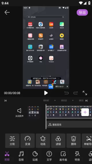 2、进入剪辑界面,轻松选择视频素材,运用丰富工具进行精细剪辑。