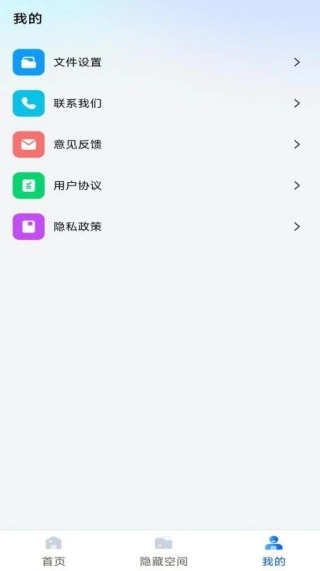 4. 轻点页面底部的“我的”,便能看到文件设置、联系我们、意见反馈等功能选项。