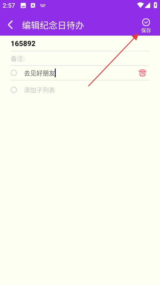 3、在【编辑纪念日待办】页面,填写内容后点击右上角【保存】,完成待办编辑。