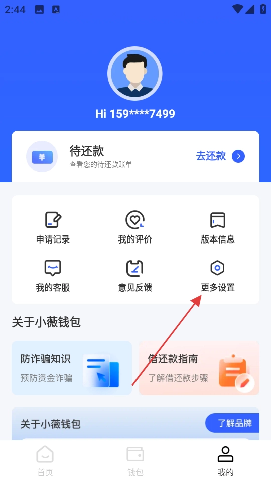 2、在【我的】页面,点击【更多设置】,进入设置页面。