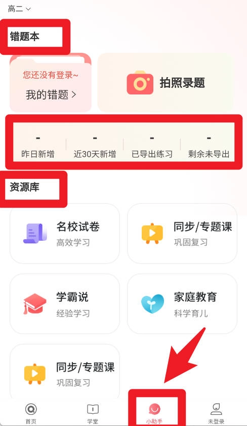 5、小助手具备错题本、资源库以及名校试卷等实用功能,还支持拍照录题与导出错题操作,极大地方便了孩子开展针对性练习与复习。