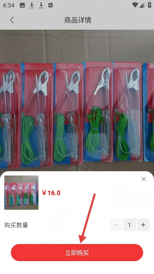 4、进入【试灯】商品的详情页面,你能够选择想要购买的数量,接着点击【立即购买】按钮来完成下单操作。