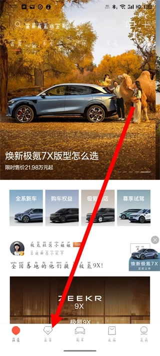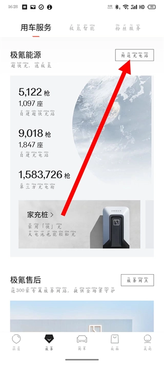 1. 开启极氪汽车,轻点底部的服务选项,从而进入服务页面。
