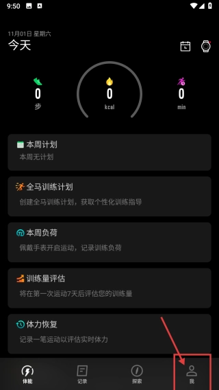 1. 点开运动类别,点击底部的“我”选项,进入个人中心界面。