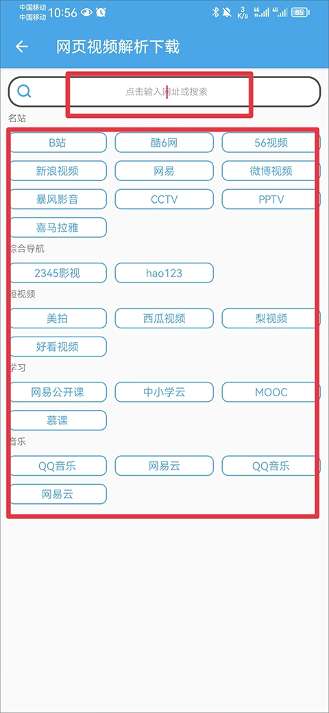 1. 你既能够在下方分类里挑选平台,也能把在其他平台复制的链接置于搜索框内进行解析。