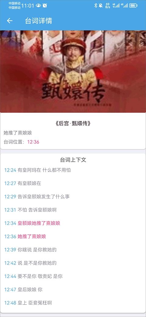 2、然后点击进入台词详情,就可以看到该台词的上下文啦