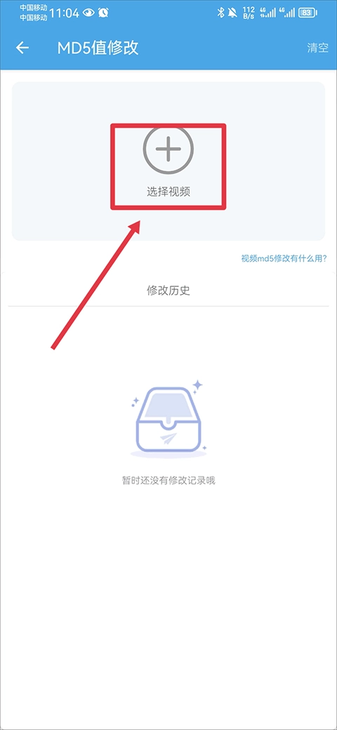 2、点击后会跳转至相册中,选择视频后会自动为你修改好,在修改历史中你可以查看到原MD5和新MD5