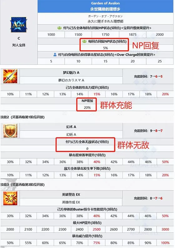 核心优势:群体无敌,中长线作战和消耗战中,宝具的HP/NP回复效果显著