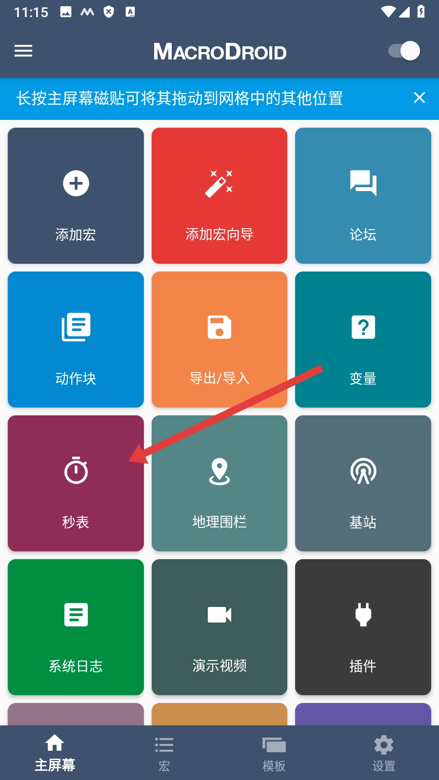 2、通知栏功能实用,可显示永久通知保持后台活动,支持自定义图标与功能按钮,不仅不占用多余空间,还能快速操作宏开关。