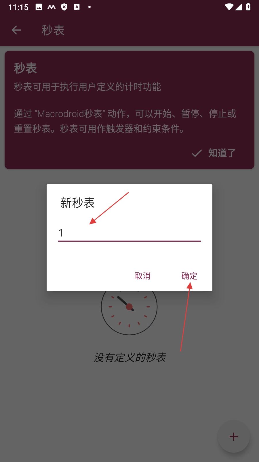 3、在新秒表命名框【输入名称】后点击【确定】,创建新秒表。