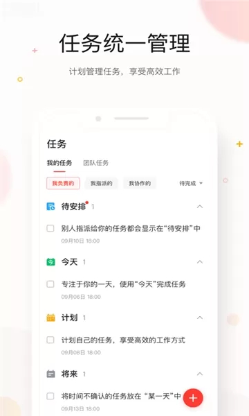 2、【待办】统一的待办处理平台,快捷查看并处理所有工作待办事项;支持创建团队协同待办,随时随地追踪任务进度,提高协同效率。
