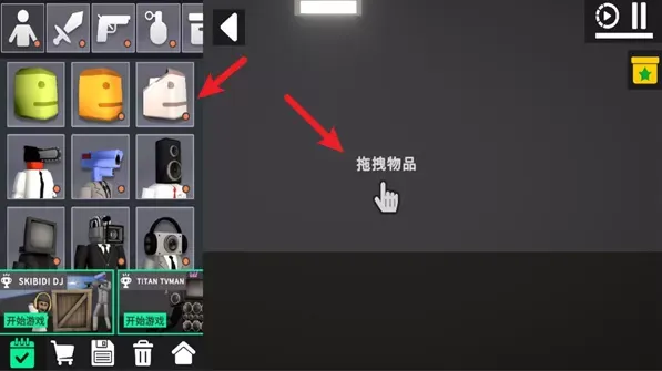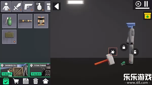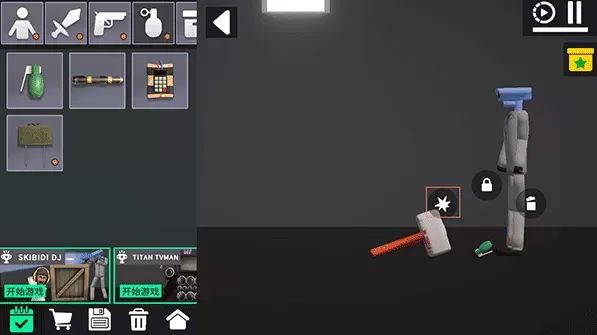 自由建造与探索:玩家可拖拽布娃娃、障碍物、武器等道具进入场景,自由搭建建筑、设计机关或进行实验性操作(如爆炸测试)。