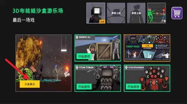 选择游戏模式(如沙盒建造、马桶人DJ合作、TITAN模式对战等)。