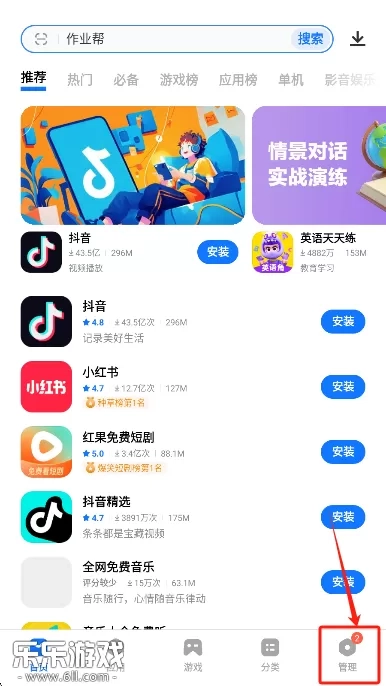 1、打开软件点击底部的管理