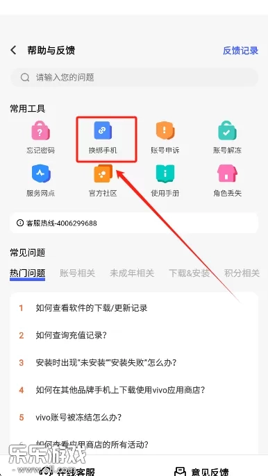 3、于页面中找寻换绑手机的功能,随后点击该功能。