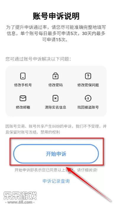 7、在页面中点击开始申诉