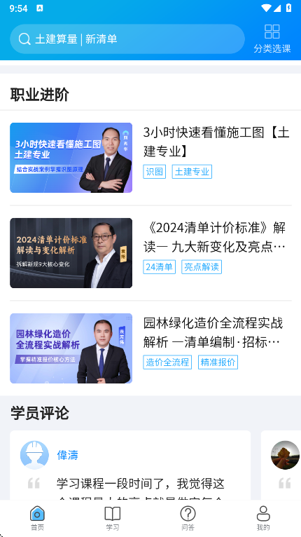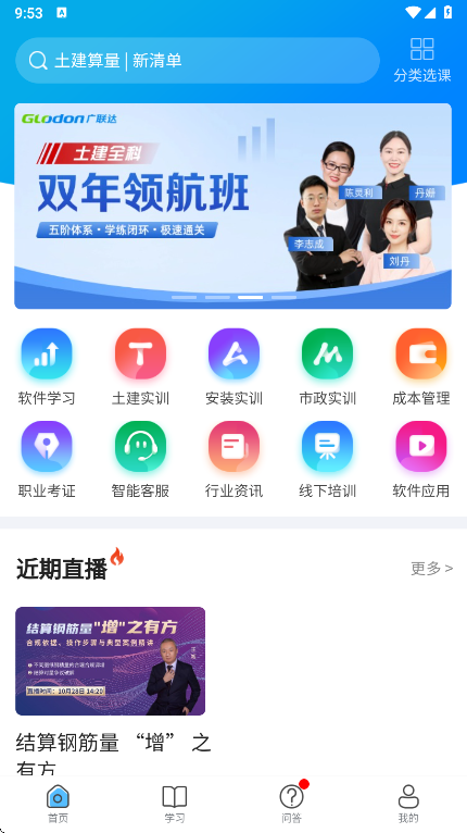 汇聚百余名优秀讲师以及多个专业培训机构,直播+录播两种形式的精品课程,支持离线缓存,随时随地学习。建筑课堂,只为创造属于建设人的未来!