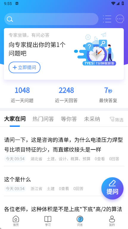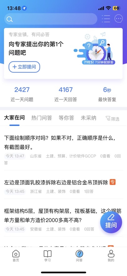 3、问答:专家坐镇,7分钟内回答你的工作问题,完全免费,还可搜索喔