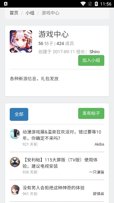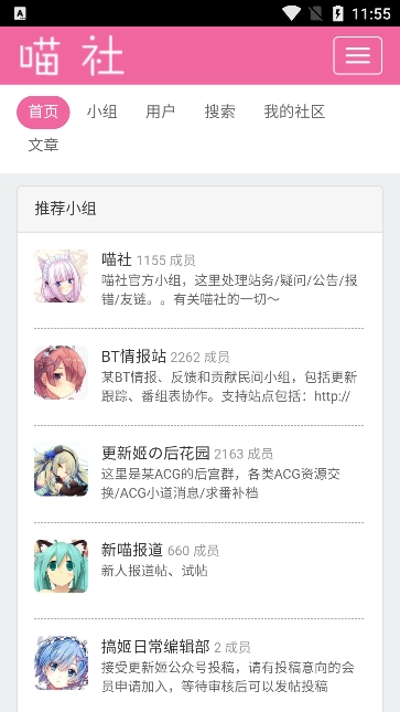 2、接着就可以进入到页面中看到许多二次元小组了。