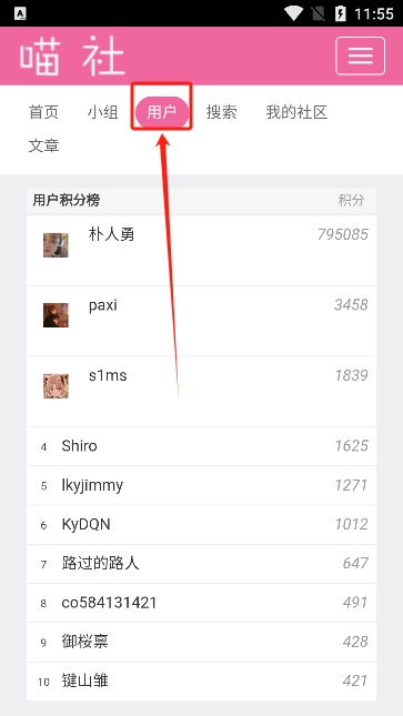 4、点击用户还能够看到用户的积分榜。