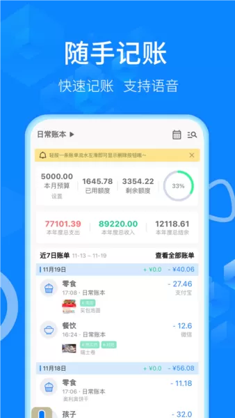 实时的进行账单数据的记录,可以有效的帮助你养成良好的记账习惯