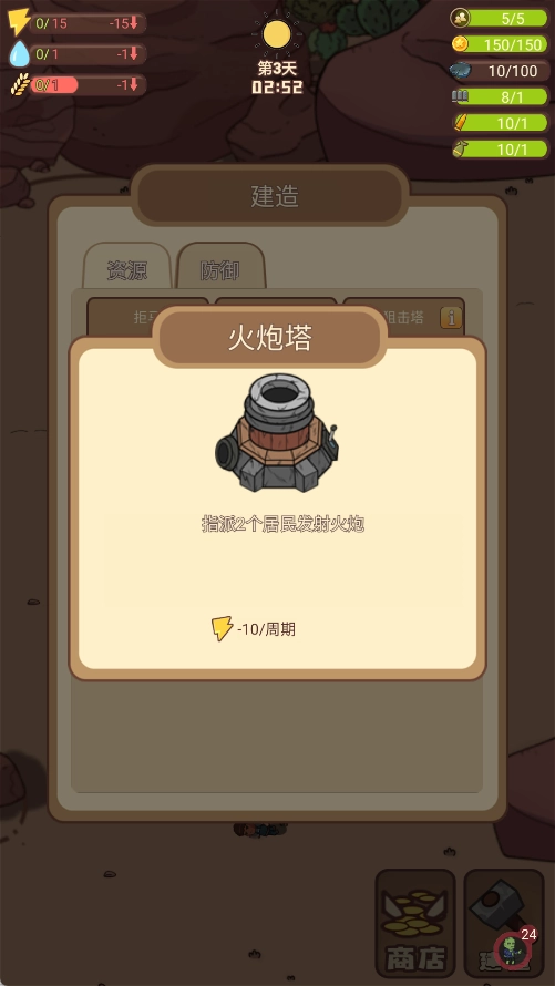 食物:建造农田,越早解锁种植系统,越能长期自给自足。