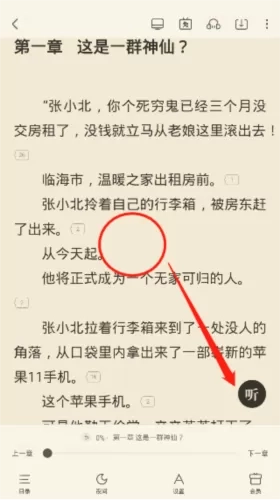3、接着来看第二种,在米读小说上打开小说内容页,然后任意点击位置。