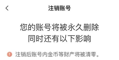 注销后账号内金币等财产将被清零。