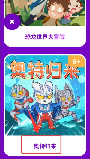 3、在板块中选取感兴趣的内容如"奥特归来",进入详情页面。
