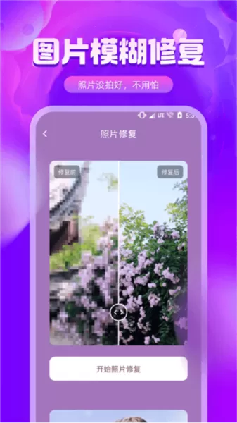 图片修复精灵,由湖南万维沃克信息科技有限公司精心研发,是一款功能丰富、工具多样的图片处理神器。它不仅能一键恢复视频与图片文件,还能轻松提升图片画质清晰度。对于老旧照片,更可进行智能上色处理,随意更改像素参数,实现模糊变清晰、清晰变模糊的神奇效果。此外,该软件还能帮您轻松找回误删的手机照片,且操作简单易用。它运用全球领先的AI图像生成技术,打造出在线照片智能修复功能。您只需从手机相册中挑选模糊照片提交处理,就能轻松收获高清美照。无论是老照片、低像素图片,还是网络及聊天工具传输压缩后的图片、动漫游戏截图等,它都能完美修复。感兴趣的朋友不妨体验一番!