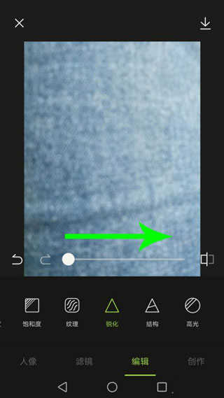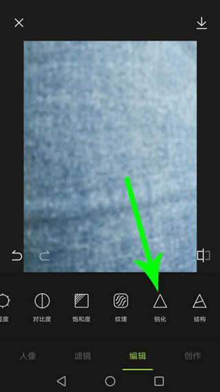 5、优化完毕以后向左滑动工具栏,然后点击“锐化”。