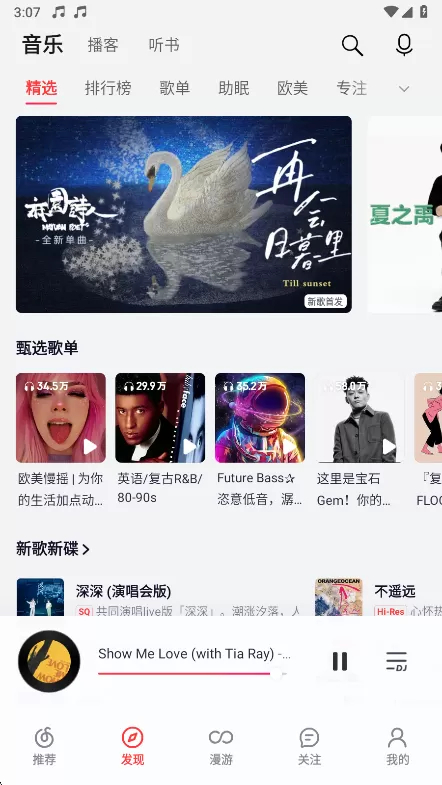 2、您可以点击发现,这里有精选歌单,排行榜,助眠,欧美歌曲等等
