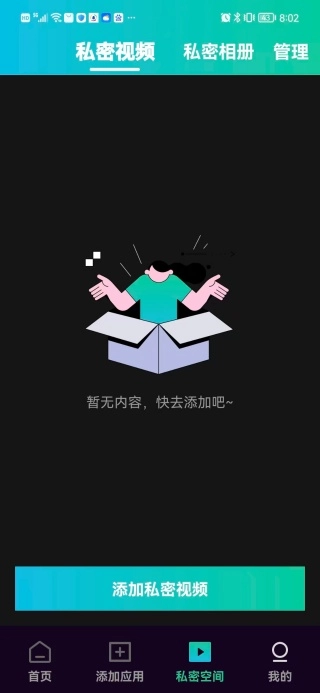 4、在私密空间页面中进行添加私密视频,然后进行管理各类私密的信息。