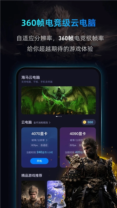 2. 云端高性能主机:运行3A游戏流畅,支持4K超清画质,带来120帧以上流畅体验。