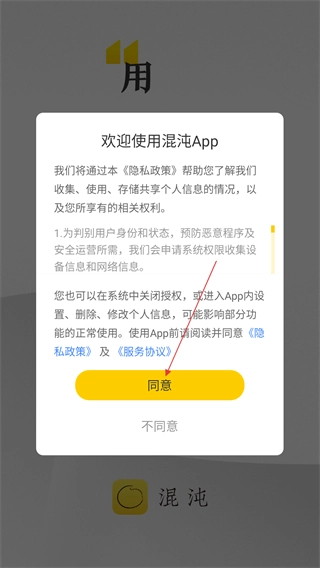 1. 于隐私政策弹窗里点击【同意】,随即进入软件。
