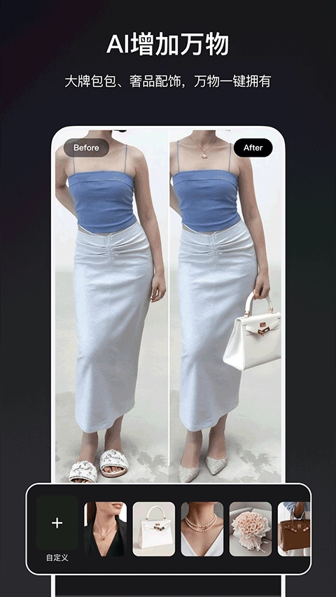 1借助AI识别与生成算法,用户仅需一键操作,就能在图片里轻松添加任意物体或元素,快速增强画面氛围。