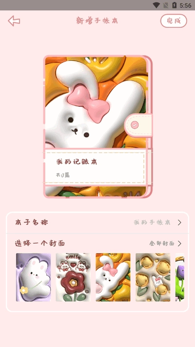 2、填写本子名称和选择封面后点击完成。