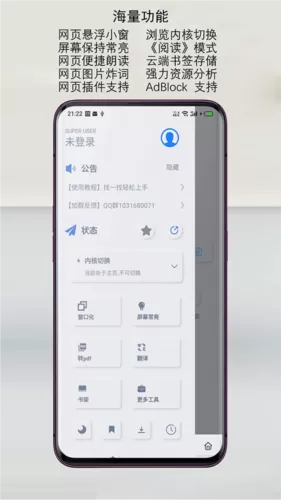 1、采用拟态UI设置,展示浏览器精美的外观,为用户提供极致的体验和新鲜感;