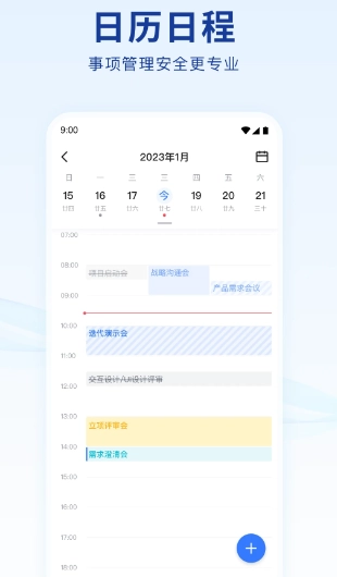 2、日历功能整合了工作待办、会议安排,每日行程一览无余。