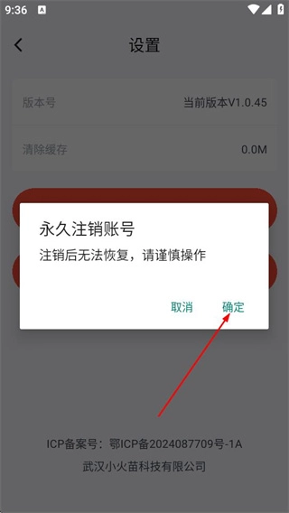 4、在弹出的注销账号确认框中点击确定,完成账号注销操作。